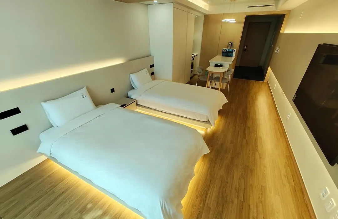 Dit hotel in Busan beschikt over een kastje, gratis wi-fi, koffie- en theevoorzieningen in elke unit. De units hebben koffie- en theevoorzieningen voor self-catering, samen met gratis wi-fi voor entertainment.
